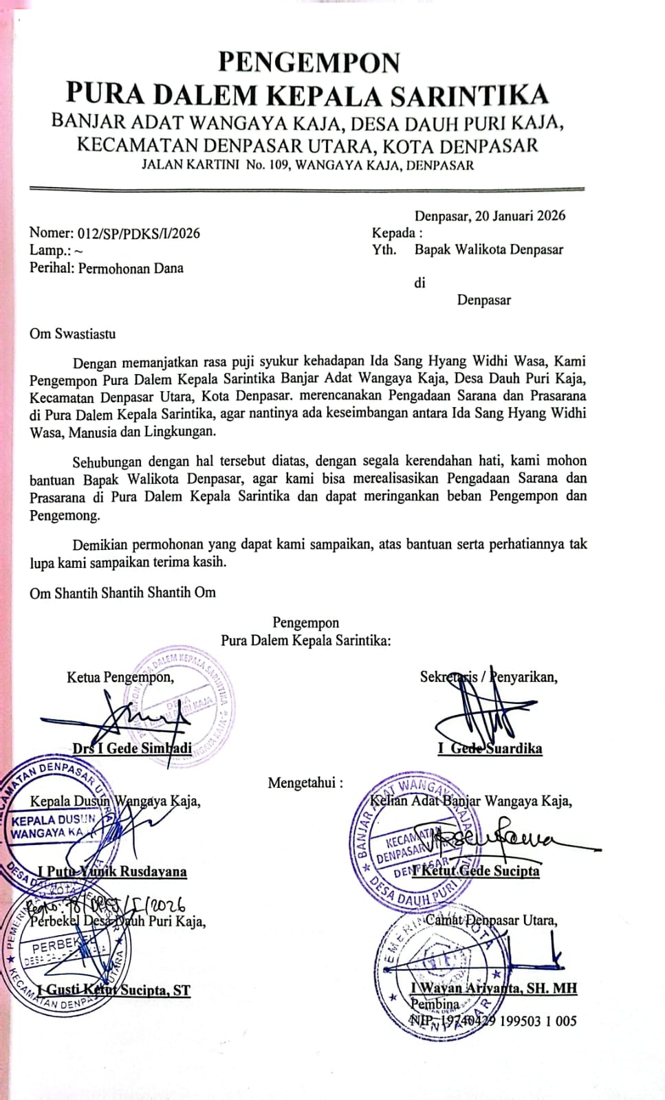 PENGADAAN SARANA DAN PRASARANA DI PURA DALEM KEPALA SARINTIKA