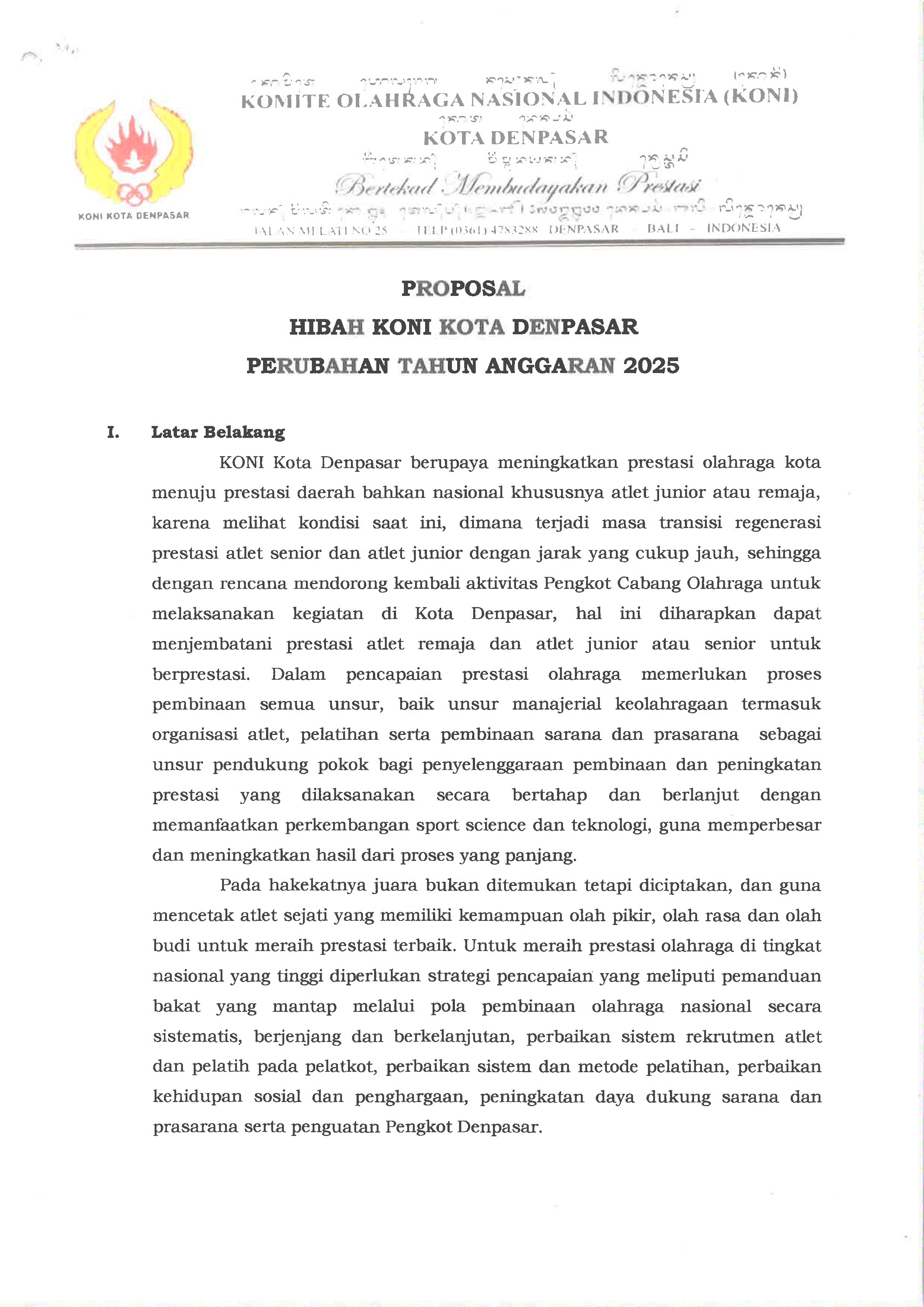 HIBAH KONI KOTA DENPASAR PERUBAHAN TAHUN ANGGARAN 2025
