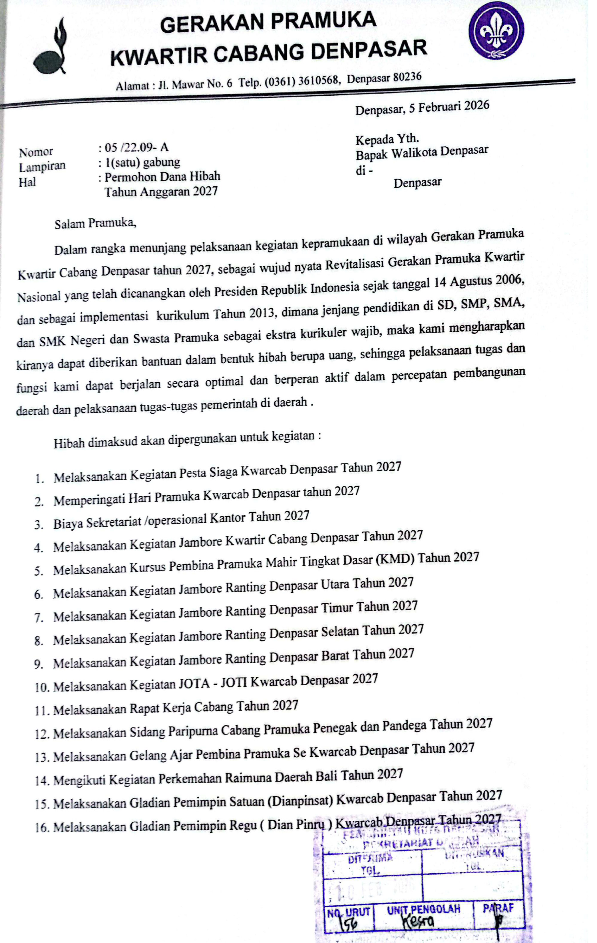 Permohonan Dana Hibah Pramuka Tahun Anggaran 2027
