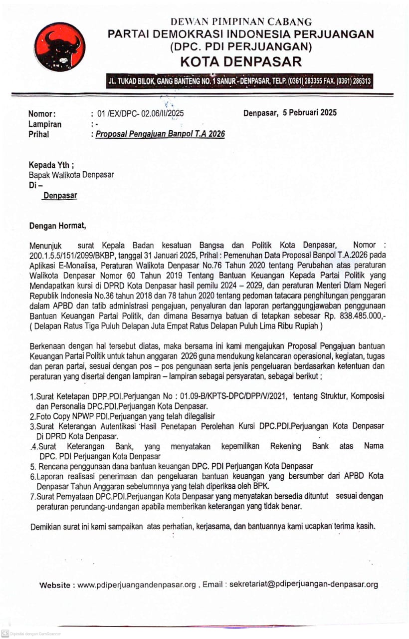 PROPOSAL PERMOHONAN BANTUAN KEUANGAN PARTAI 2026