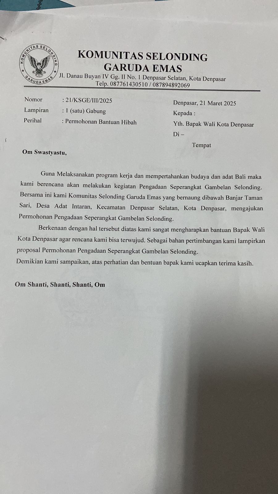 Pembelian Seperangkat Gambelan Baleganjur