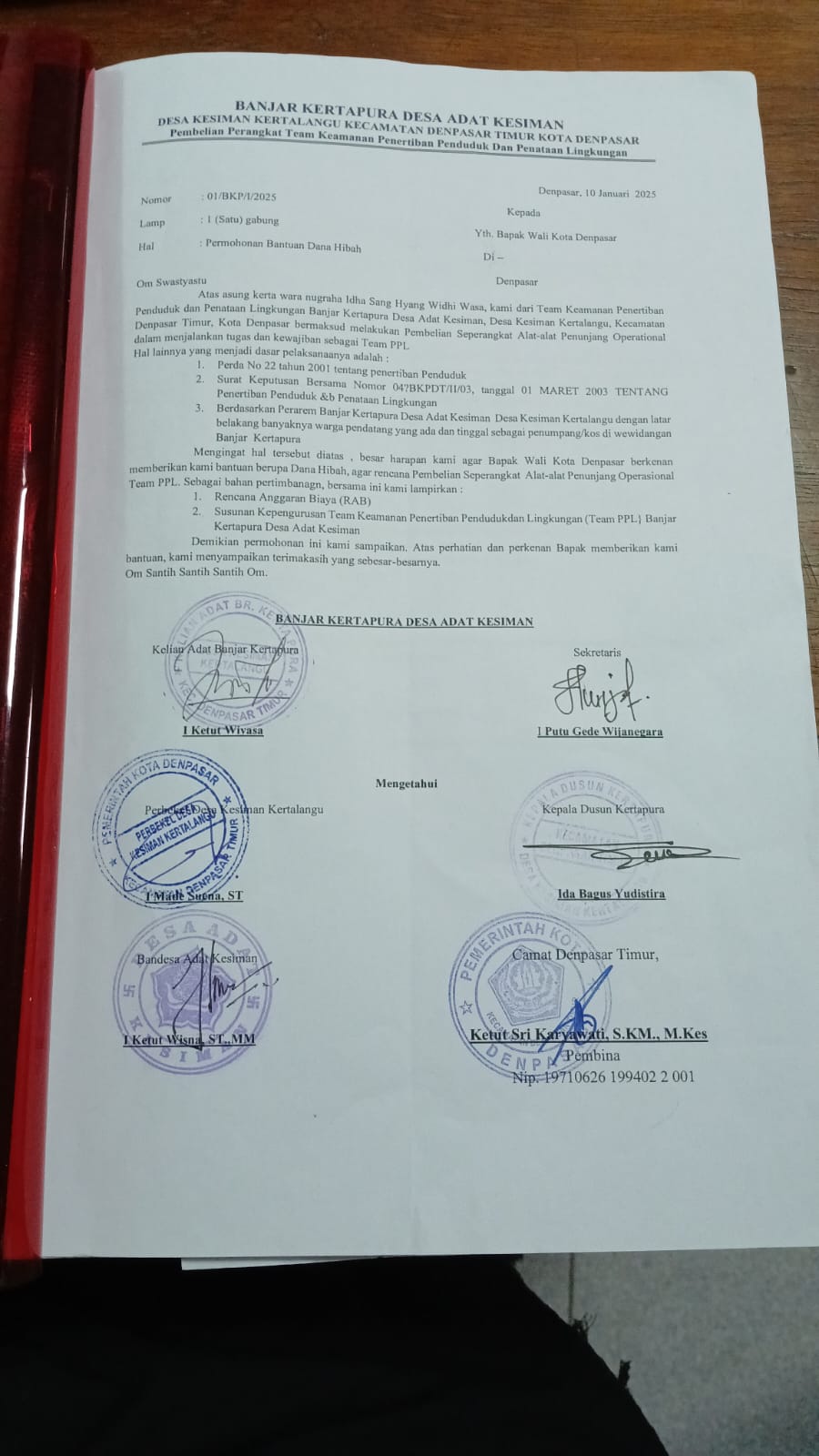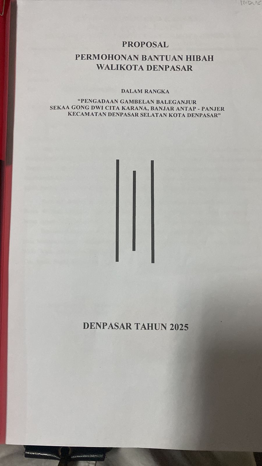 Permohonan Bantuan Dana Pengadaan Sarana Prasarana gamelan Selonding dan Gamelan Semarpagulingan